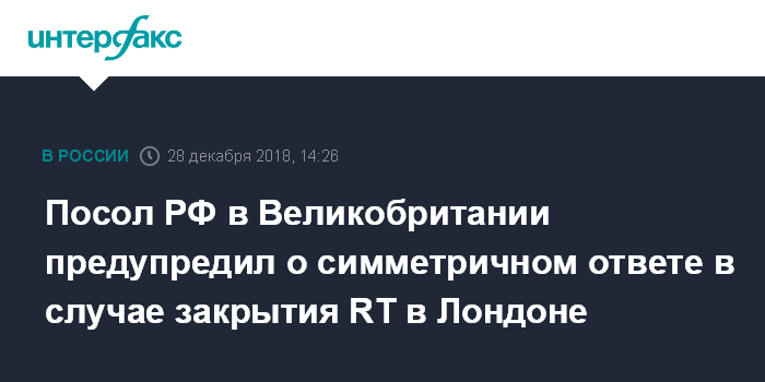 Посол РФ в Великобритании предупредил о симметричном ответе в случае закрытия RT в Лондоне