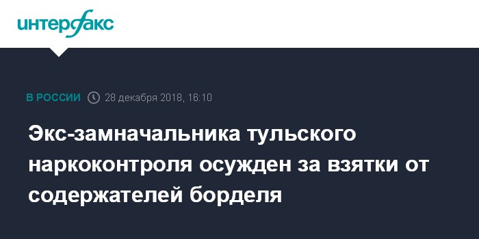 Экс-замначальника тульского наркоконтроля осужден за взятки от содержателей борделя