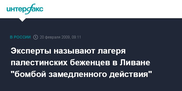 Москва. 20 февраля. INTERFAX.RU - Лагеря палестинских беженцев на территории Ливана - это "бомбы замедленного действия", считают эксперты международной группы по преодолению кризисов.
