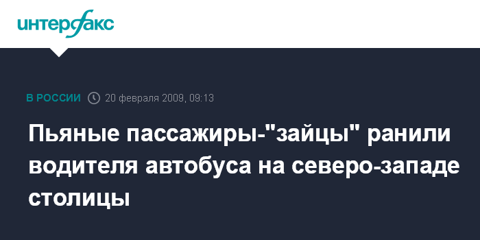 Москва. 20 февраля. INTERFAX.RU - На северо-западе столицы в четверг вечером пьяные пассажиры нанесли ножевое ранение водителю автобуса, об этом "Интерфаксу" сообщил источник в правоохранительных органах города.