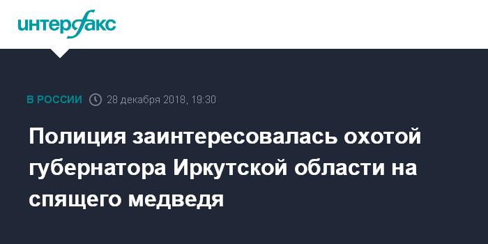 Москва. 28 декабря. INTERFAX.RU - Полиция проверит информацию СМИ об охоте на медведя губернатора Иркутской области Сергея Левченко, в ходе которой спящий хищник был застрелен в берлоге.