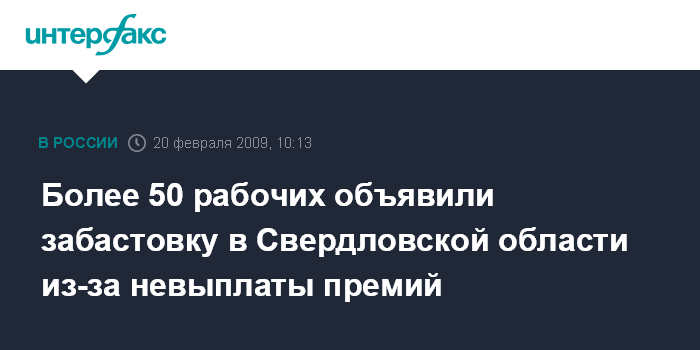 Более 50 рабочих объявили забастовку в Свердловской области из-за невыплаты премий