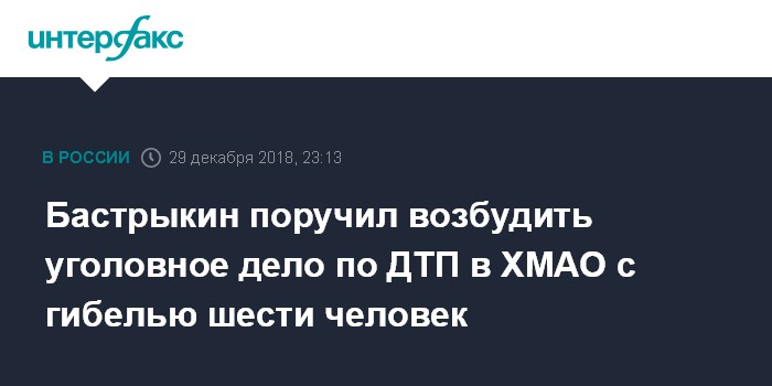 Бастрыкин поручил возбудить уголовное дело по ДТП в ХМАО с гибелью шести человек