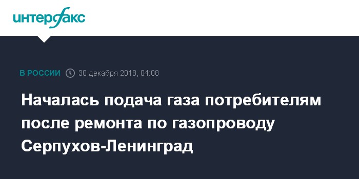 Началась подача газа потребителям после ремонта по газопроводу Серпухов-Ленинград