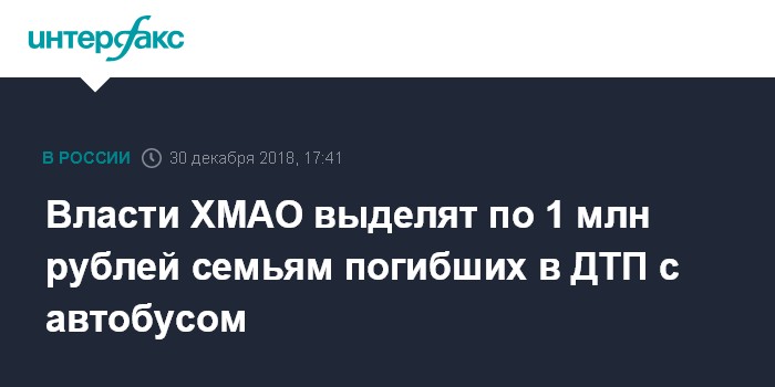 Власти ХМАО выделят по 1 млн рублей семьям погибших в ДТП с автобусом