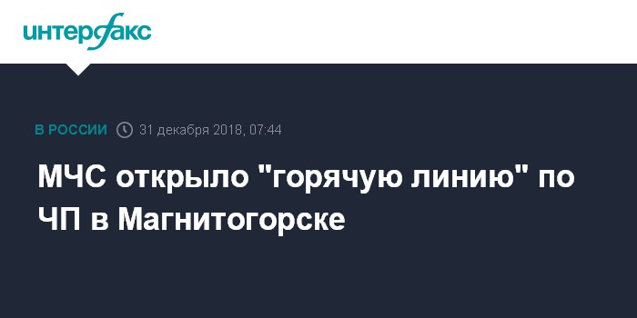 Москва. 31 декабря. INTERFAX.RU - В Магнитогорске запущен телефон "Горячей линии" для информирования родственников пострадавших и погибших при взрыве газа в жилом доме, сообщили "Интерфаксу" в пресс-службе ведомства.