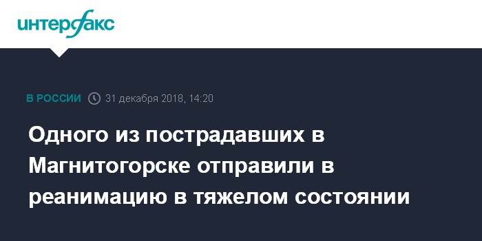 Москва. 31 декабря. INTERFAX.RU - Трое взрослых и один ребенок находятся в больницах Магнитогорска, один из пострадавших в тяжелом состоянии, сообщает пресс-служба Министерства здравоохранения по Челябинской области.