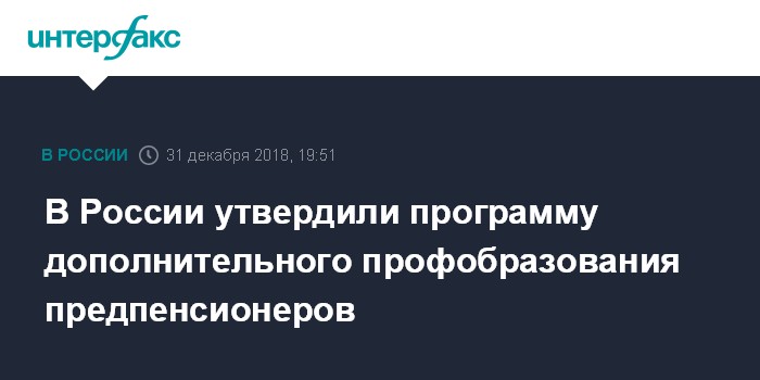 Москва. 31 декабря. INTERFAX.RU - Правительство РФ утвердило программу обучения и повышения квалификации для граждан предпенсионного возраста.