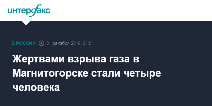 Москва. 31 декабря. INTERFAX.RU - В МЧС России уточнили, что в результате взрыва газа в жилом доме в Магнитогорске, по имеющимся данным, погибли четыре человека.