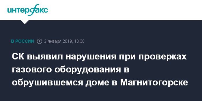 Москва. 2 января. INTERFAX.RU - Глава Следственного комитета Александр Бастрыкин заявил, что газовое оборудование в жилом доме в Магнитогорске, в котором произошло обрушение 31 декабря, не проверялось более полугода.