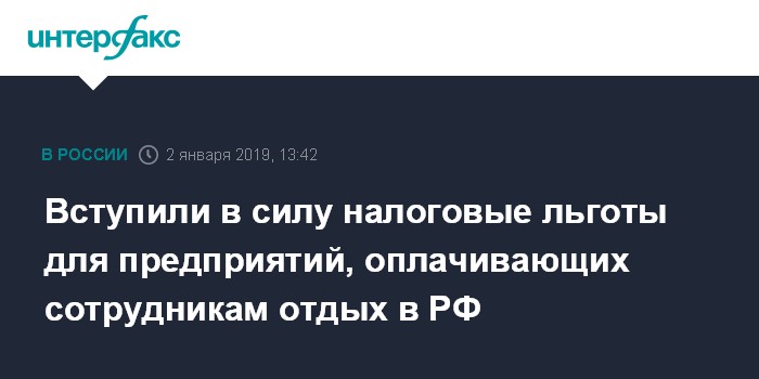 Вступили в силу налоговые льготы для предприятий, оплачивающих сотрудникам отдых в РФ