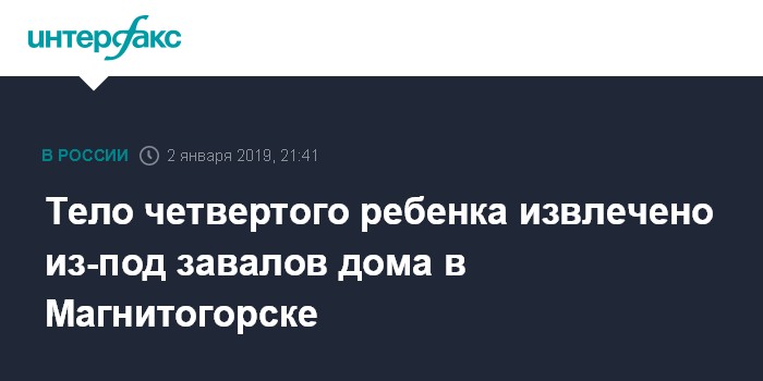 Тело четвертого ребенка извлечено из-под завалов дома в Магнитогорске