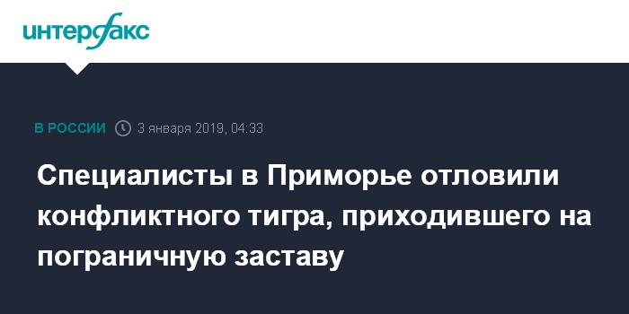 Москва. 3 января. INTERFAX.RU - Специалисты в Приморье изъяли из дикой природы амурского тигра, который утащил служебных собак на погранзаставе, территория которой входит в состав национального парка "Земля леопарда".