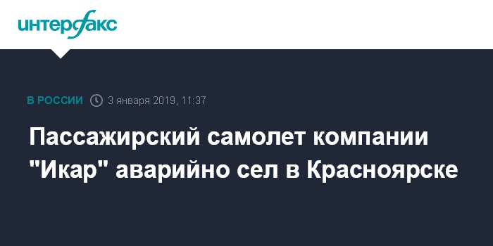 Пассажирский самолет компании "Икар" аварийно сел в Красноярске