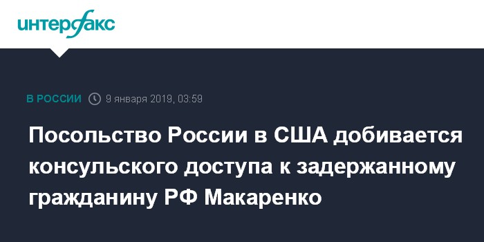 Как сообщалось ранее, МИД РФ потребовал от Вашингтона разъяснения причин ареста гражданина России Макаренко и полного соблюдения его прав гражданина.