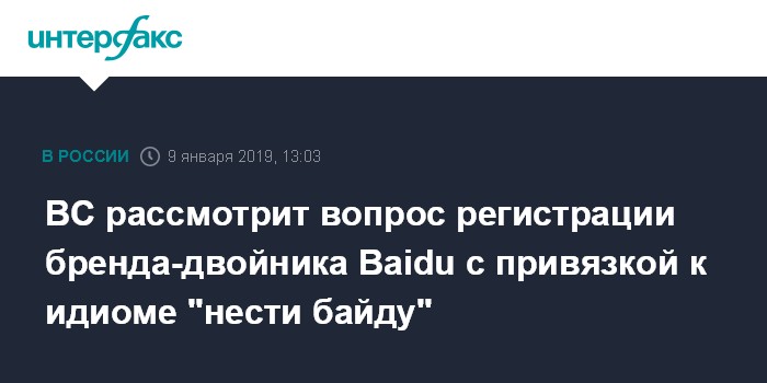 ВС рассмотрит вопрос регистрации бренда-двойника Baidu с привязкой к идиоме "нести байду"