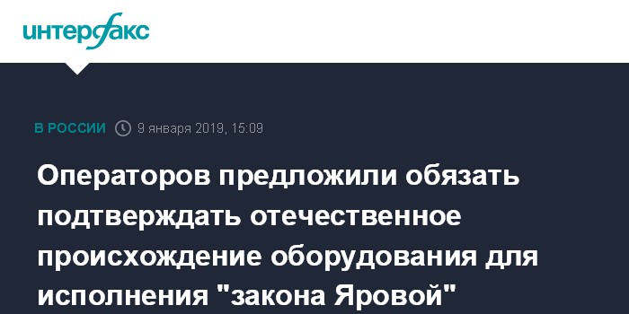 Операторов предложили обязать подтверждать отечественное происхождение оборудования для исполнения "закона Яровой"