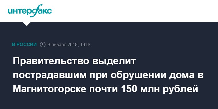Правительство выделит пострадавшим при обрушении дома в Магнитогорске почти 150 млн рублей