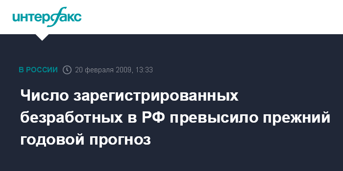 Число зарегистрированных безработных в РФ превысило прежний годовой прогноз