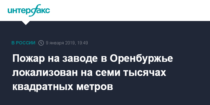 Москва. 9 января. INTERFAX.RU - Пожарные подразделения локализовали крупное возгорание на заводе цинкования под Оренбургом, сообщили агентству "Интерфакс" в региональном ГУ МЧС РФ.