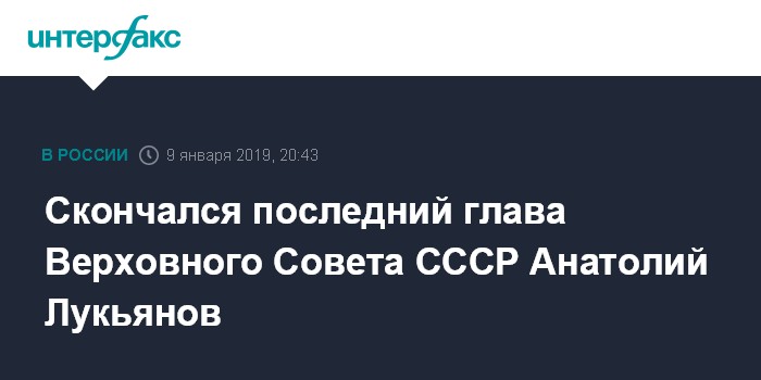 "Сегодня ушел из жизни известный смолянин и замечательный человек - последний председатель Верховного Совета СССР А.И.Лукьянов", - сообщил в своем твиттере губернатор Смоленской области Алексей Островский.
