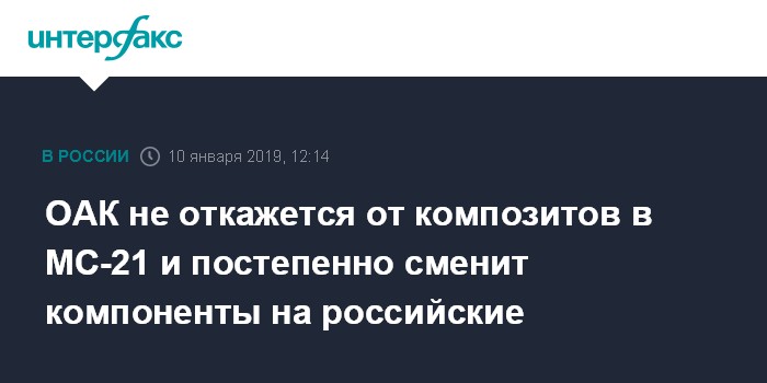 "При финансовой и организационной поддержке Минпромторга в нашей стране осваивается вся цепочка производства композитных материалов в военной и гражданской сферах. В частности, уже несколько лет идет активная работа с "Росатомом", ВИАМом, рядом частных компаний по освоению производства композитных материалов для авиации. В результате в рамках общей программы импортозамещения идет пошаговая замена необходимых компонентов композитного крыла МС-21 на отечественные аналоги. Замена материала не влечет конструктивных изменений и может быть оформлена как дополнение к сертификату типа без изменения сроков сертификации", - отметила корпорация.