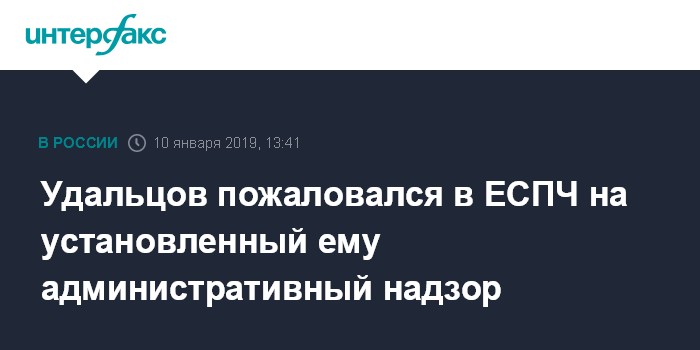 Москва. 10 января. INTERFAX.RU - Оппозиционер Сергей Удальцов обратился в Европейский суд по правам человека (ЕСПЧ) с жалобой на решение об установлении ему трехлетнего административного надзора, сообщил "Интерфаксу" его адвокат Дмитрий Аграновский.