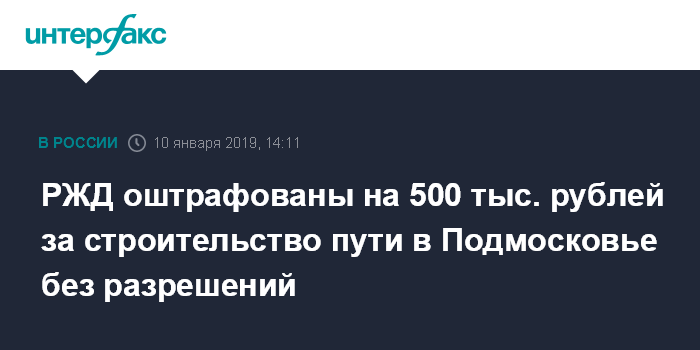 РЖД оштрафованы на 500 тыс. рублей за строительство пути в Подмосковье без разрешений
