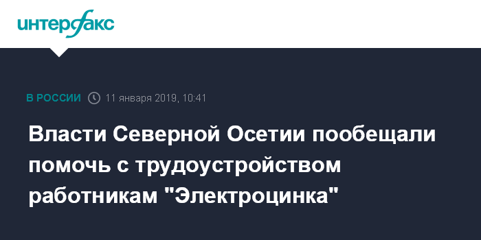Москва. 11 января. INTERFAX.RU - Власти Северной Осетии помогут с трудоустройством работникам завода "Электроцинк" во Владикавказе, который было решено закрыть после сильного пожара; для этой цели будет создана рабочая группа, сообщил в пятницу глава республики Вячеслав Битаров.