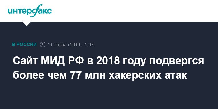 Сайт МИД РФ в 2018 году подвергся более чем 77 млн хакерских атак