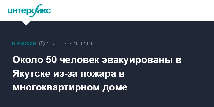 Москва. 12 января. INTERFAX.RU - Многоквартирный дом горит в Якутске, эвакуированы около 50 человек, сообщает в субботу пресс-служба регионального главка МЧС России.