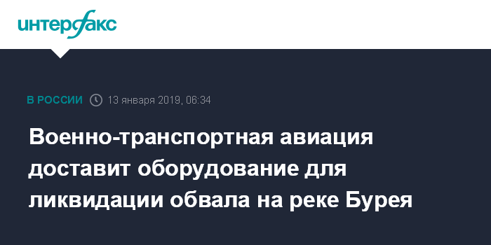 Москва. 13 января. INTERFAX.RU - Началась доставка воздушным путем в Хабаровский край инженерного оборудования для ликвидации последствий обвала породы близ Бурейского водохранилища, сообщает департамент информации и массовых коммуникаций министерства обороны РФ.