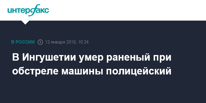Москва. 13 января. INTERFAX.RU - В реанимации ингушской республиканской больницы от полученных ран скончался сотрудник правоохранительных органов, пострадавший при обстреле накануне вечером, сообщили в воскресенье "Интерфаксу" в медучреждении.