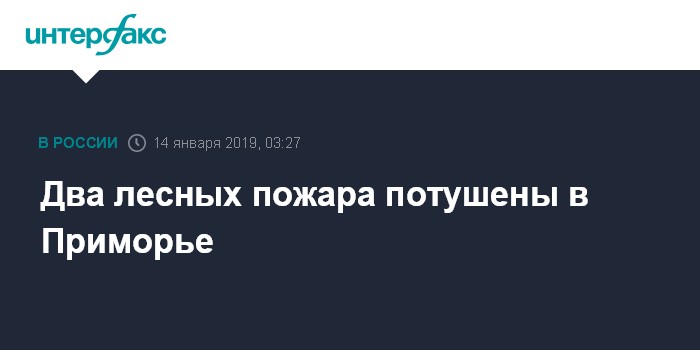 Москва. 14 января. INTERFAX.RU - Два лесных пожара потушены в выходные дни в Приморье, сообщает в понедельник пресс-служба администрации края.