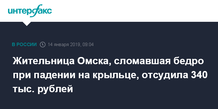 Жительница Омска, сломавшая бедро при падении на крыльце, отсудила 340 тыс. рублей