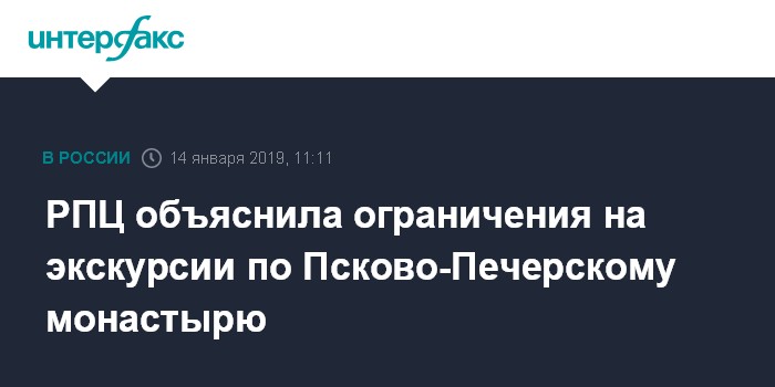 Москва. 14 января. INTERFAX.RU - В Псковской митрополии считают несправедливыми упреки в том, что с нового года групповые экскурсии по Псково-Печерскому монастырю разрешено проводить только монастырским экскурсоводам.