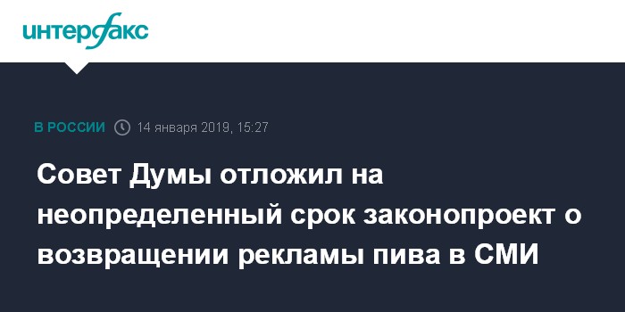Совет Думы отложил на неопределенный срок законопроект о возвращении рекламы пива в СМИ