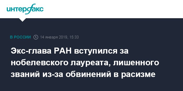 Экс-глава РАН вступился за нобелевского лауреата, лишенного званий из-за обвинений в расизме