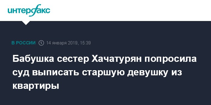 Москва. 14 января. INTERFAX.RU - Бутырский суд Москвы 21 января проведет подготовку по иску бабушки сестер Хачатурян, обвиняемых в убийстве отца, которая просит выписать старшую девушку - Крестину из квартиры.