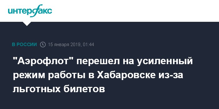 "Аэрофлот" перешел на усиленный режим работы в Хабаровске из-за льготных билетов