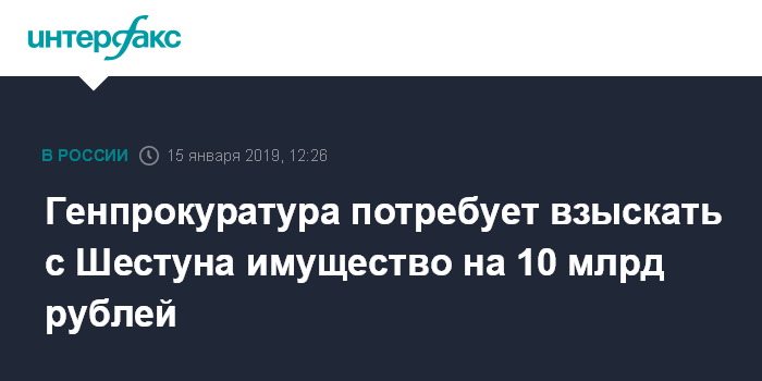 Генпрокуратура потребует взыскать с Шестуна имущество на 10 млрд рублей