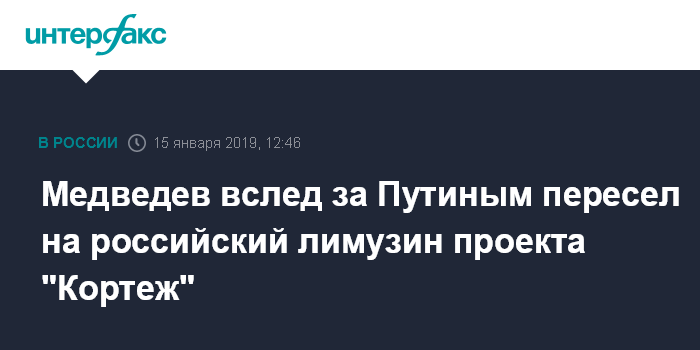 Медведев вслед за Путиным пересел на российский лимузин проекта "Кортеж"