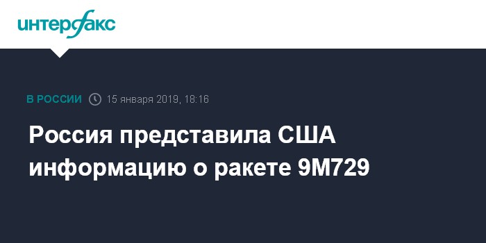 Москва. 15 января. INTERFAX.RU - РФ проинформировала США о возможностях ракеты 9М729, которая, по мнению американцев, нарушает Договор о ликвидации ракет средней и меньшей дальности (ДРСМД), сообщил секретарь Совета Безопасности РФ Николай Патрушев.
