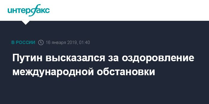 Москва. 16 января. INTERFAX.RU - Россия выступает за оздоровление непредсказуемой и напряжённой международной обстановки, заявил президент РФ Владимир Путин.