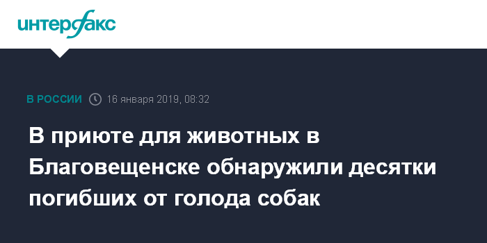"Поступила информация о ненадлежащем содержании животных в приюте, который расположен в селе Чигири. На место выезжала следственно-оперативная группа, которая зафиксировала, что на территории приюта имеются трупы собак", - сообщила агентству "Интерфакс" специалист по связям с общественностью МО МВД "Благовещенский" Татьяна Кутека.