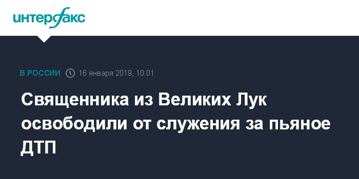 Священника из Великих Лук освободили от служения за пьяное ДТП