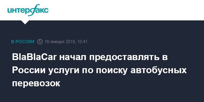 Москва. 16 января. INTERFAX.RU - Сервис поиска попутчиков для автомобильных поездок BlaBlaCar со среды начал предоставлять в России услуги по поиску автобусных перевозок, говорится в пресс-релизе компании.