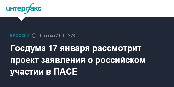 "Сегодня никаких существенных подвижек в позиции Ассамблеи нет. В этой ситуации Государственная Дума не видит оснований для возвращения российской делегации в ПАСЕ и возобновления уплаты взносов Российской Федерации в бюджет Совета Европы. Депутаты Государственной Думы в связи с этим заявляют о нецелесообразности направления заявки на подтверждение полномочий членов российской делегации в ПАСЕ в 2019 году", - говорится в проекте заявления, которое было одобрено во вторник на заседании думского комитета по международным делам.