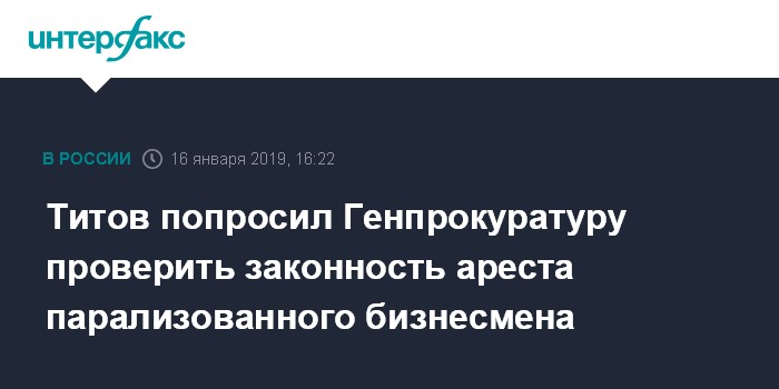 Титов попросил Генпрокуратуру проверить законность ареста парализованного бизнесмена
