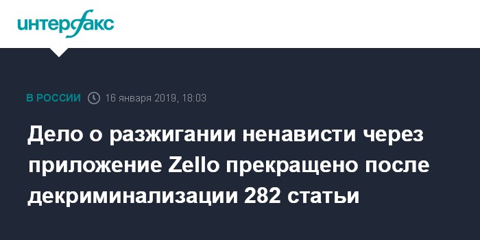 Дело о разжигании ненависти через приложение Zello прекращено после декриминализации 282 статьи